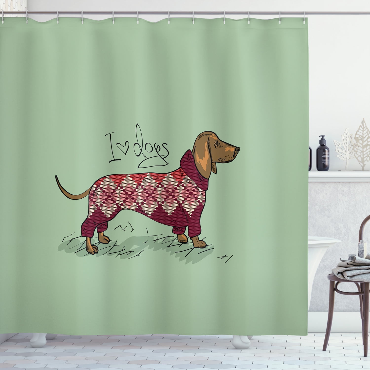 Dachshund Shower Curtain Cute Dog In Knitted Sweater Design Detailed Colorful Cartoon Style Animal Pattern Fabric Bathroom Set With Hooks 69w X 84l Inches Extra Long Multicolor By Ambesonne Walmart Com